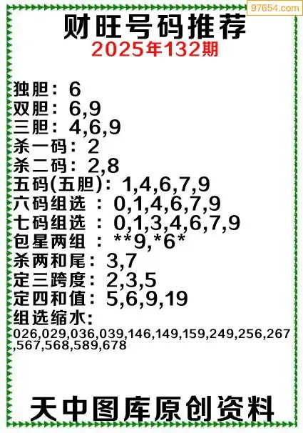 3D原创132期旺财出号推荐