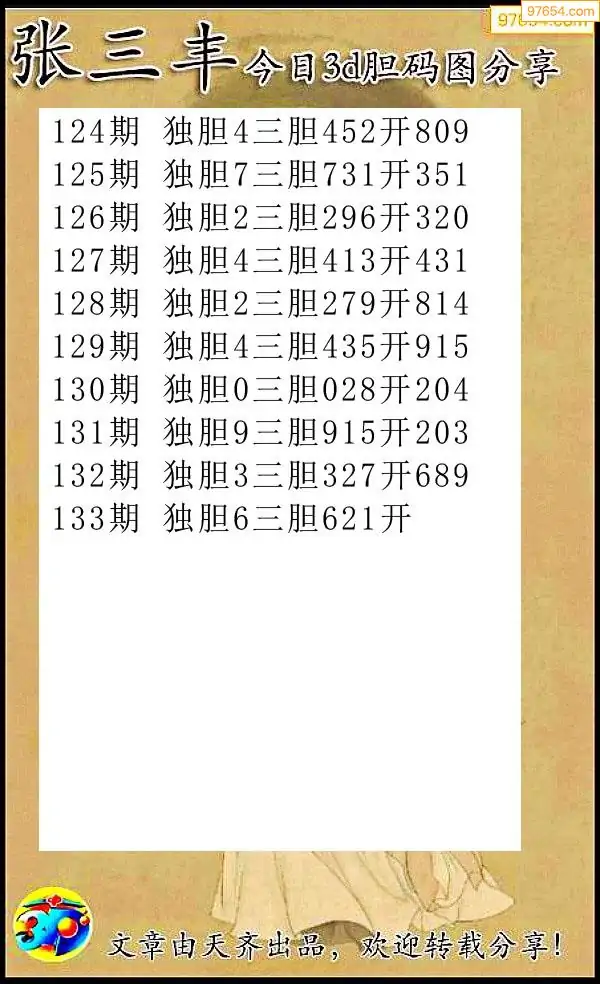 2025339期彩彩网3d原创图迷搜集(天中整理)
