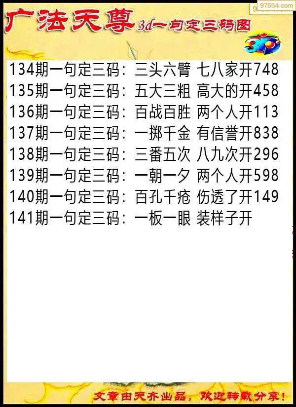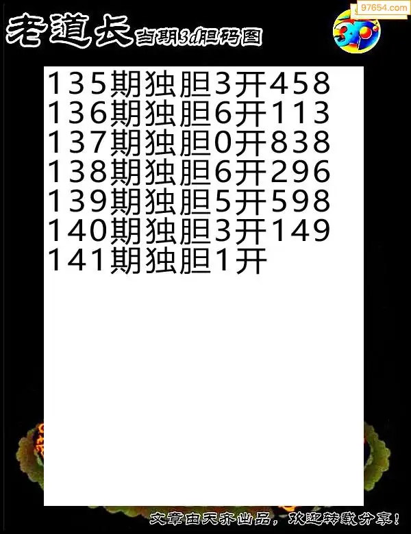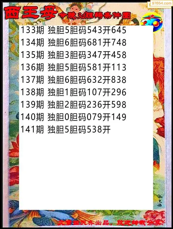 141期97654本站收集胆码出号预测
