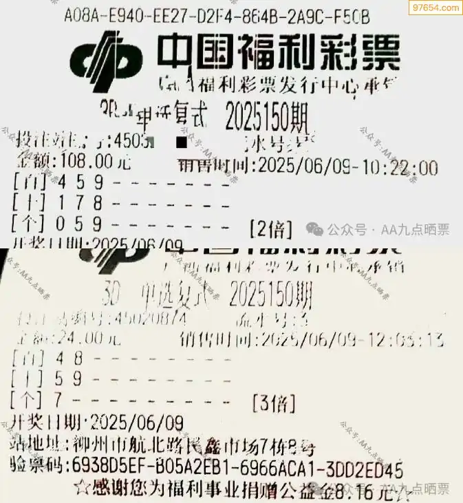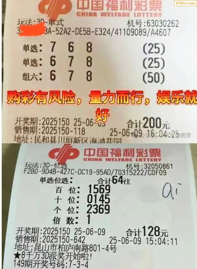 25150期福彩3d今天彩民晒票
