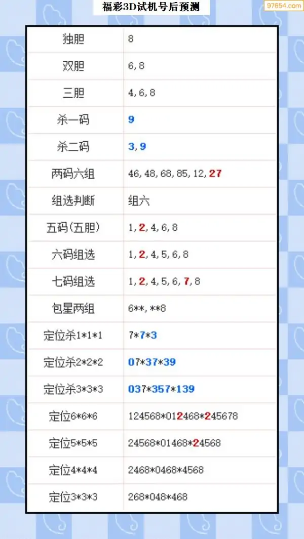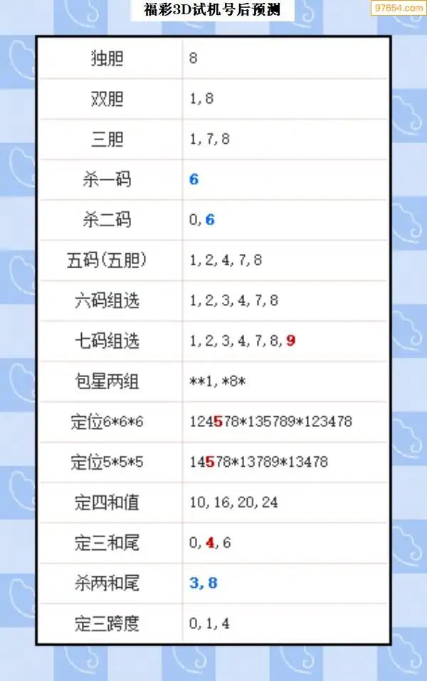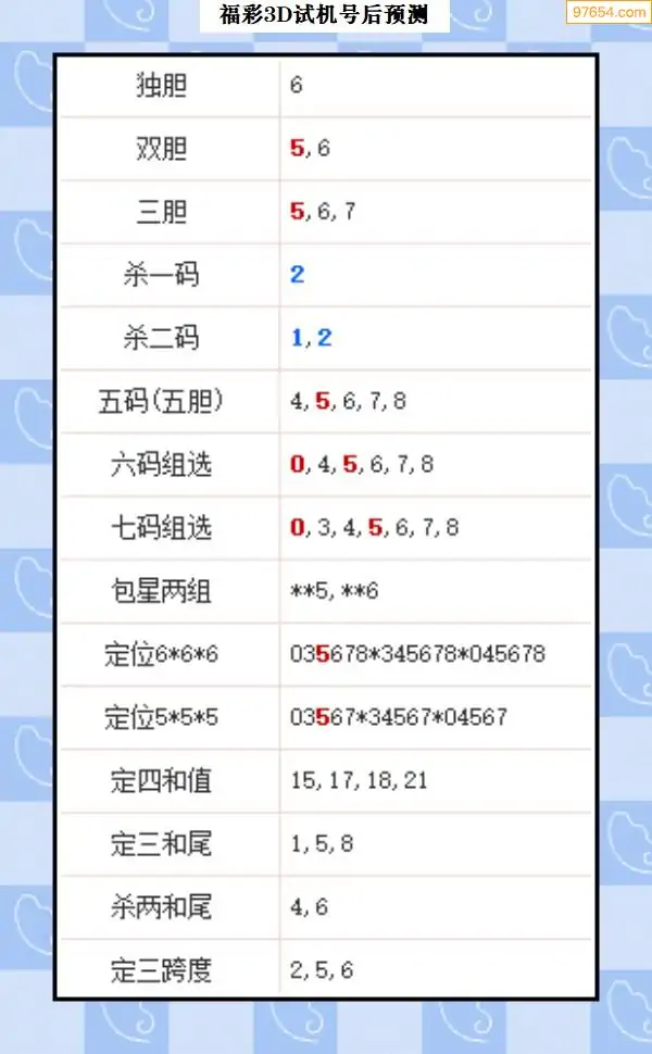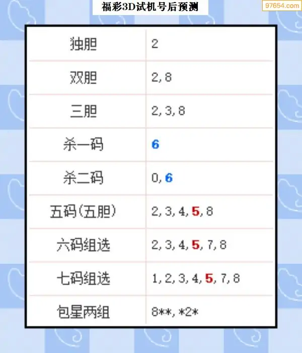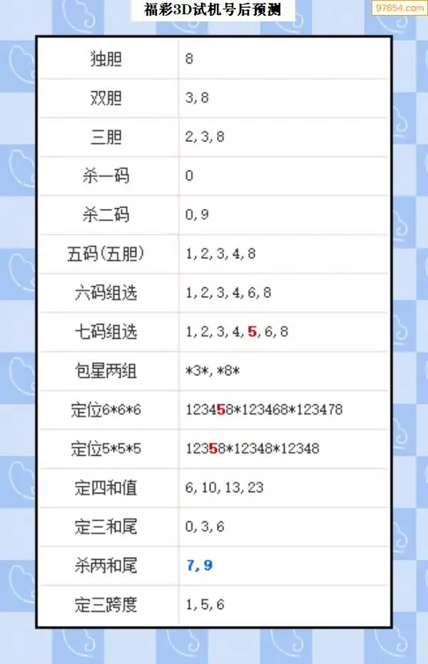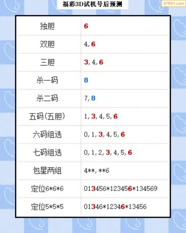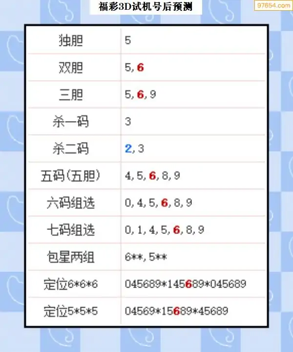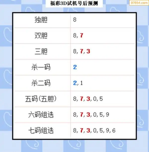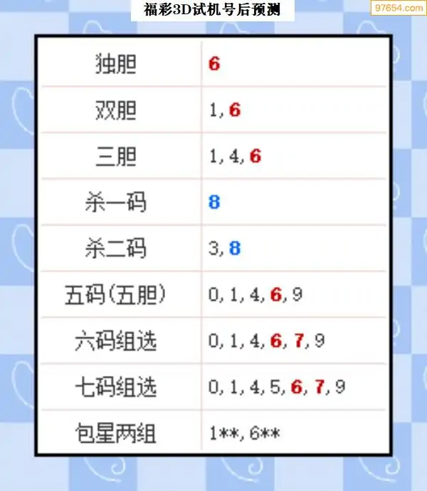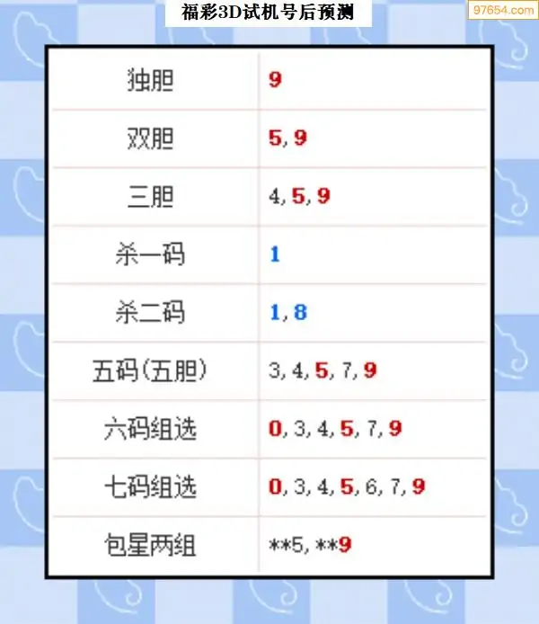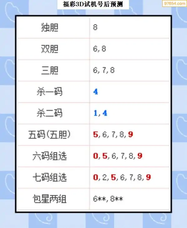 104期西南胆王预测本期3D开奖结果