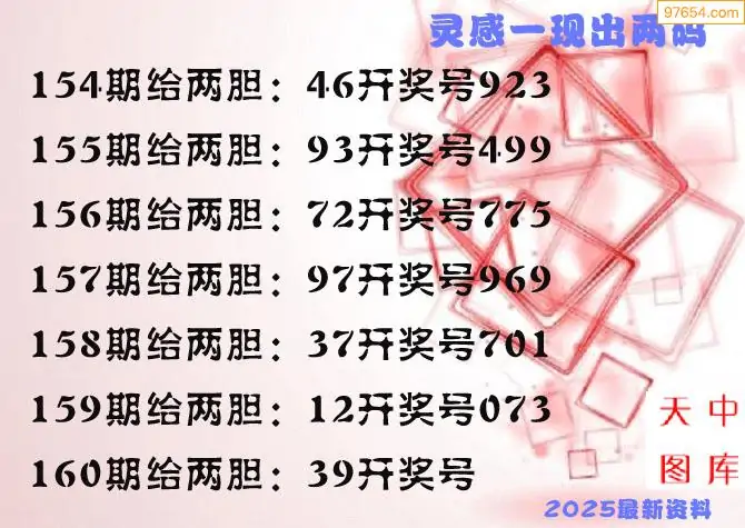 160期97654本站收集胆码出号预测