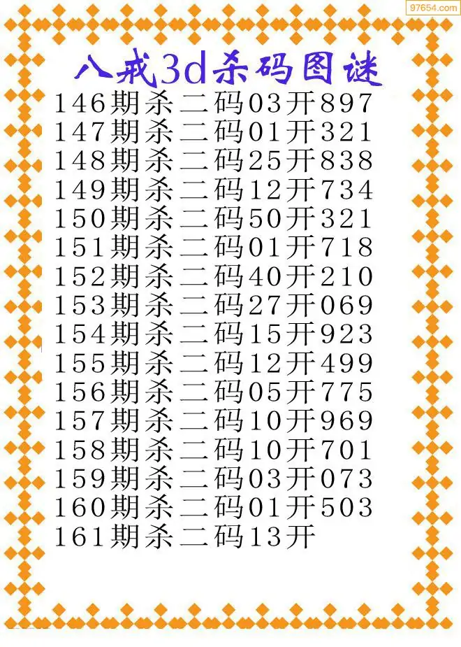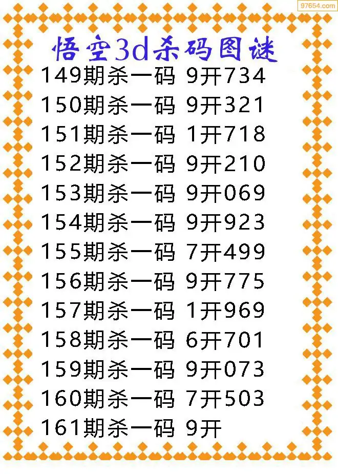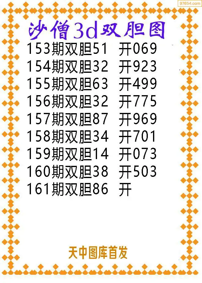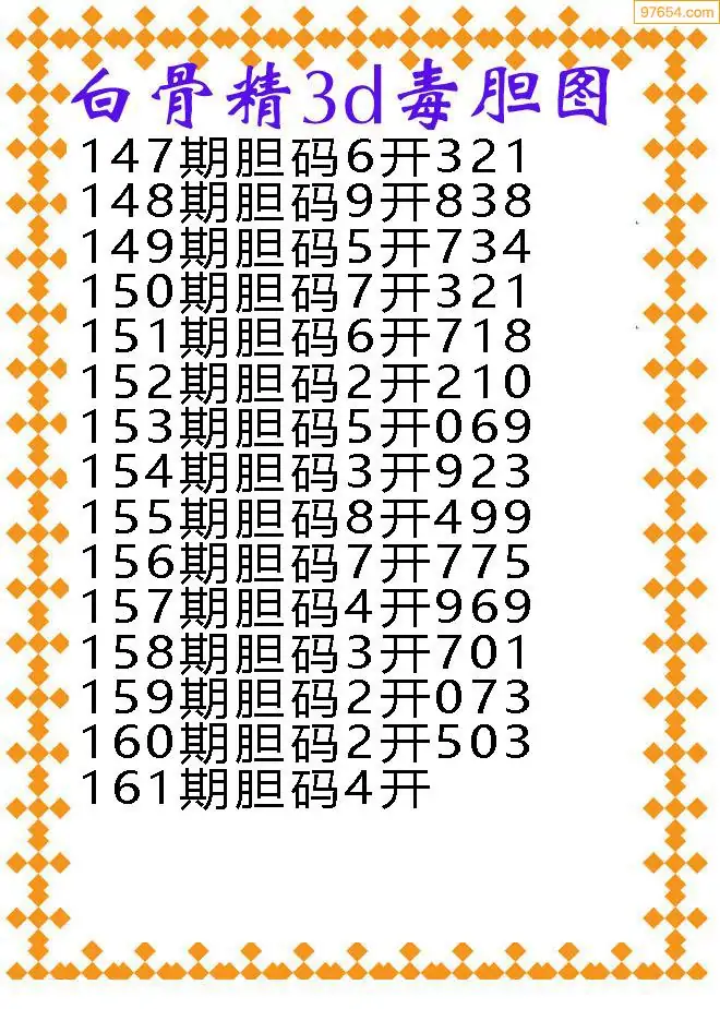 161期97654本站收集胆码出号预测