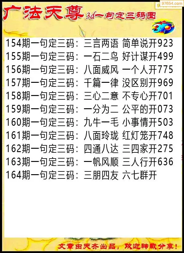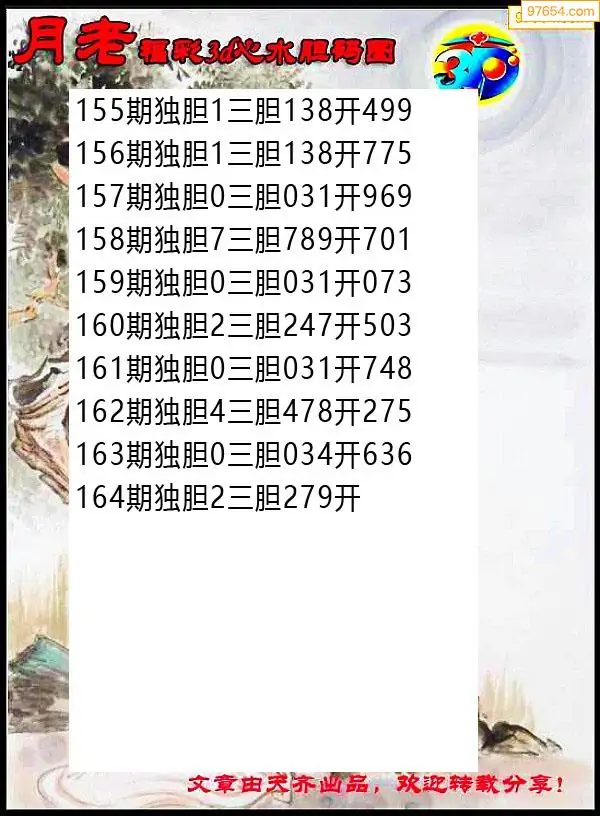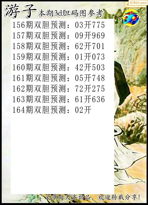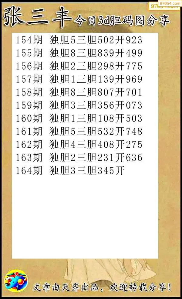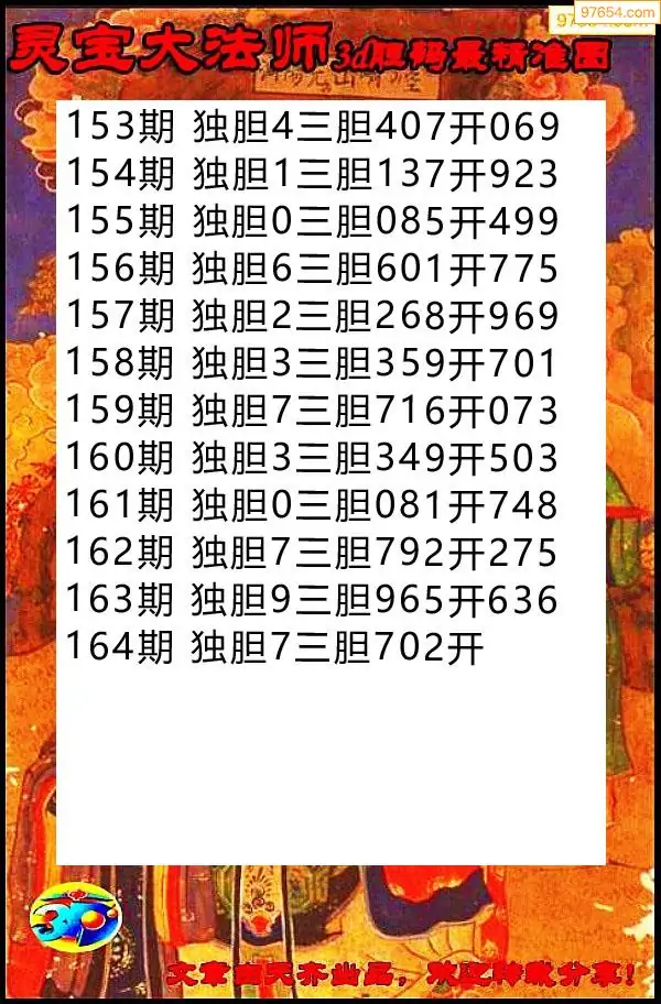 164期97654本站收集胆码出号预测