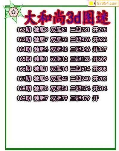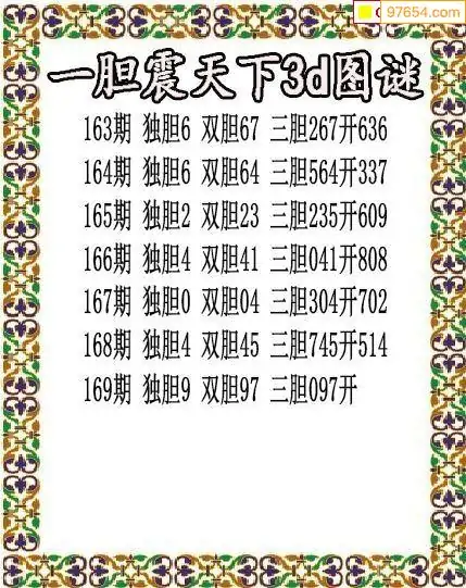 316期97654本站收集胆码出号预测