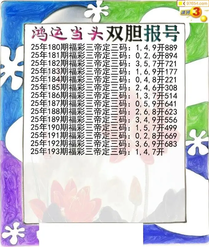 25193期鸿运当头双胆p3报号图