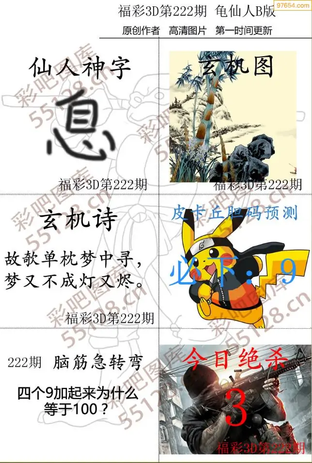 福彩3D265期天牛彩吧套图整合总汇