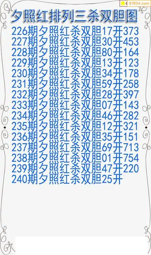 25年240期今天排三夕照红杀双胆