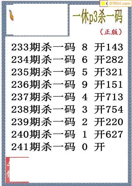 25年241期排列三一休杀码图谜