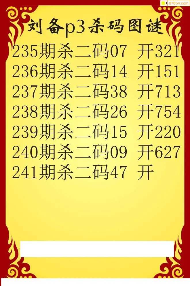 25年241期刘备p3杀码图谜