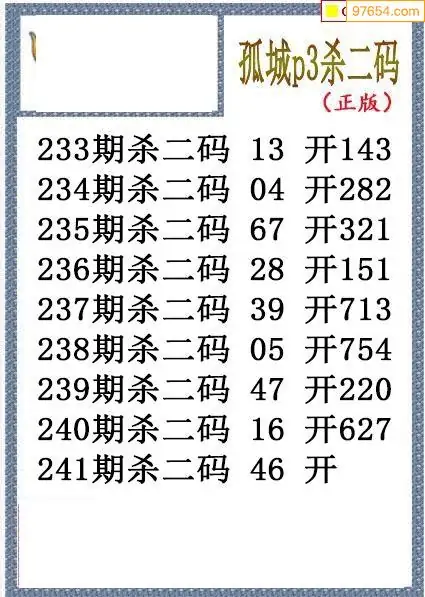 25年241期孤城本期杀码排3图谜