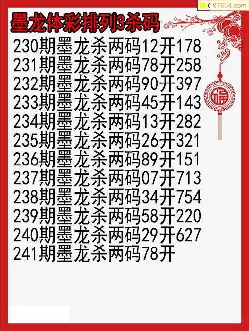 25年241期墨龙体彩排列三杀码图