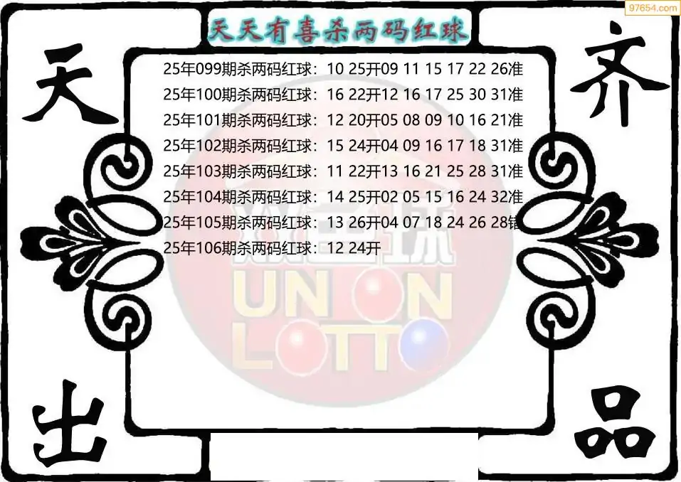 25年双色球106期天天有喜杀红图迷