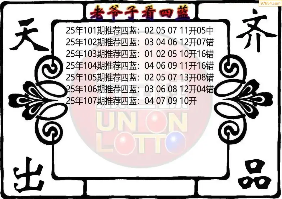 25年双色球107期老爷子四蓝图谜
