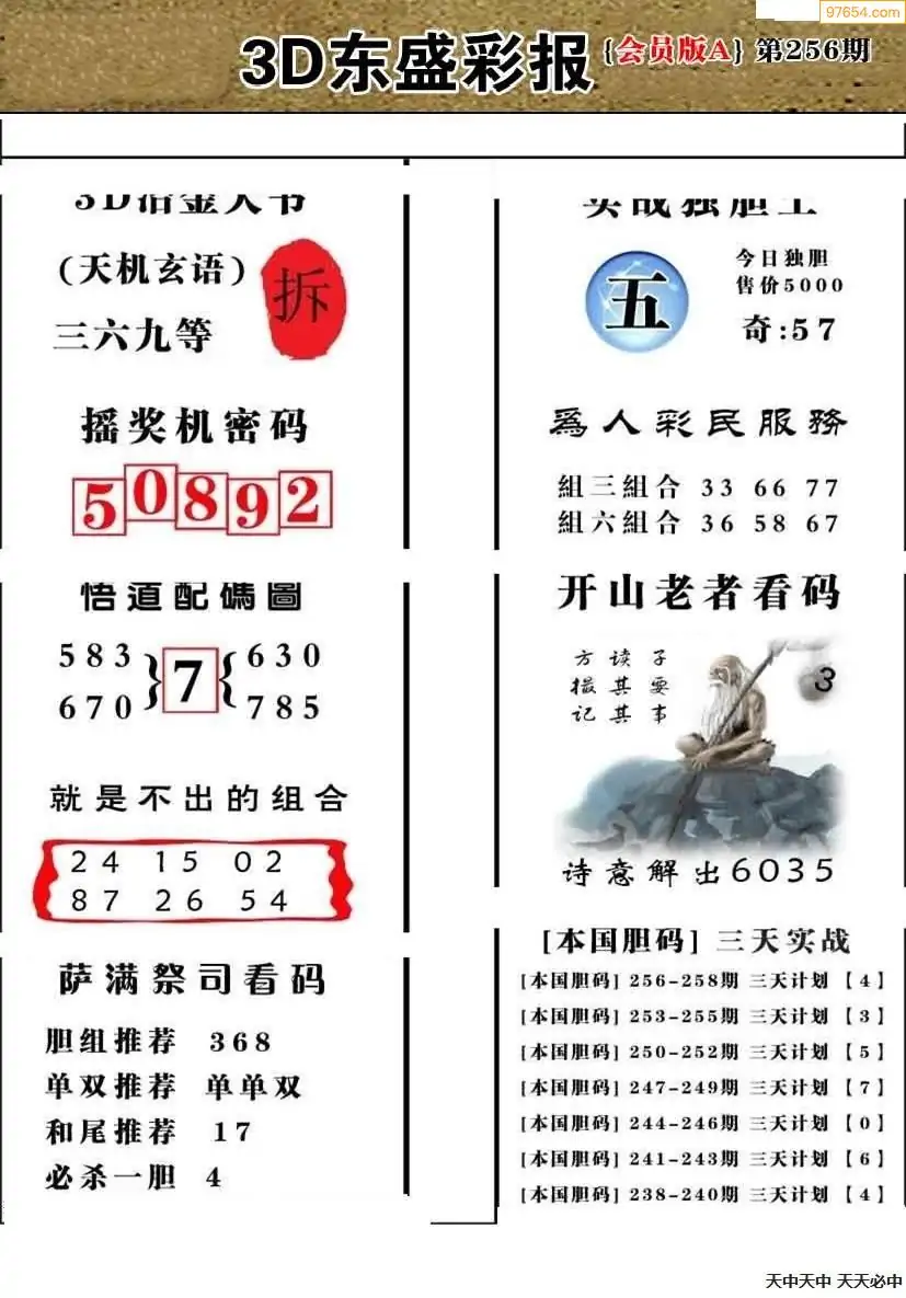 25256期今日3d三毛四版+东盛会员报