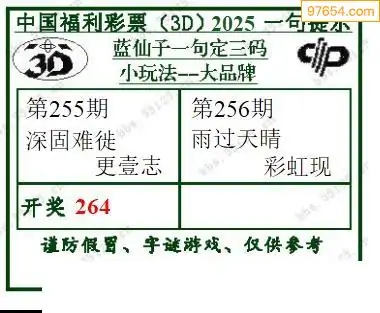 福彩3D25256期蓝仙子一句定三码图谜