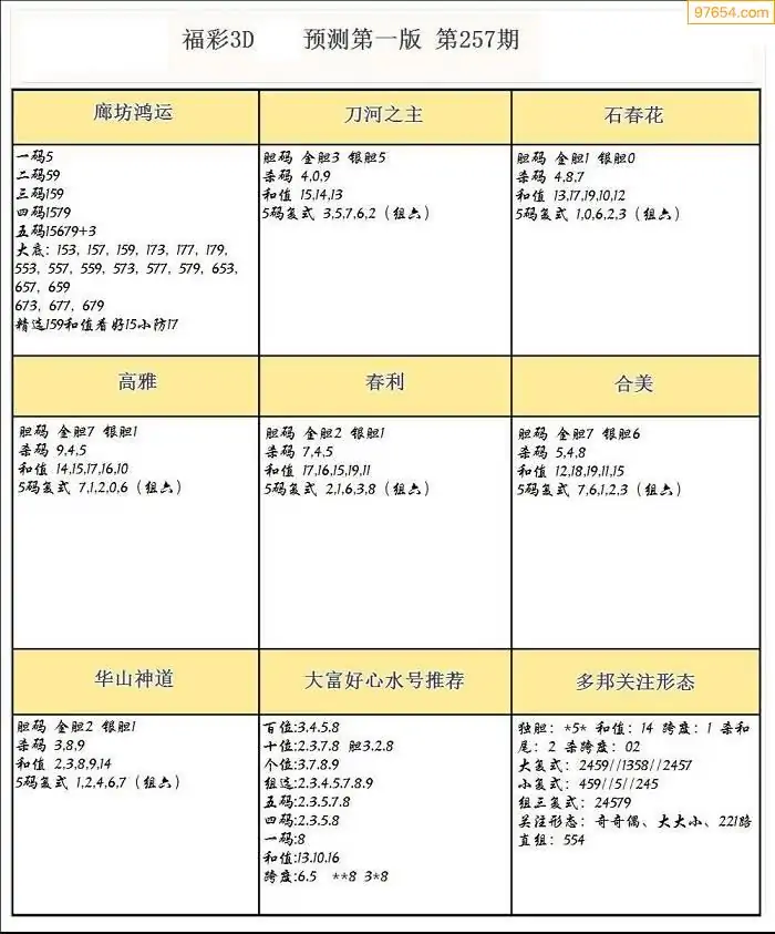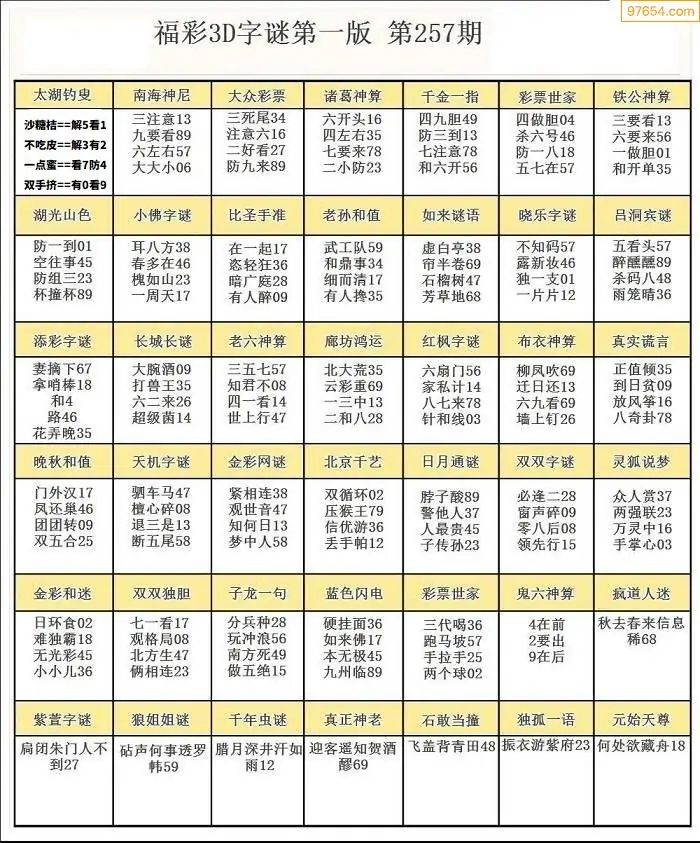 25257期3D天中原创预测字谜报