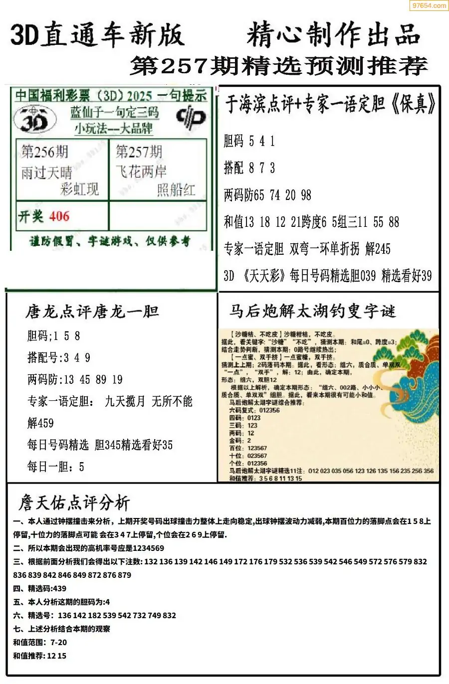福彩3D266期天牛彩吧套图整合总汇