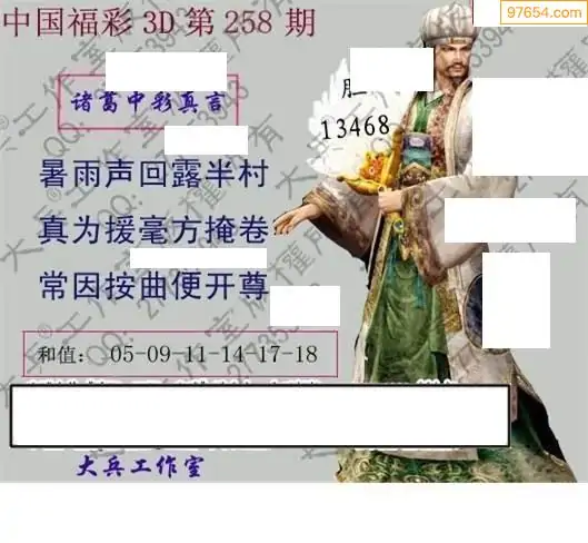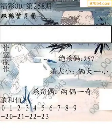 25265期福彩3D正版天宇和值谜