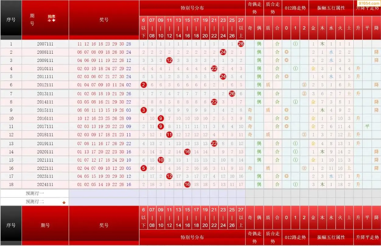 111期七乐彩历史同期图表+走势图