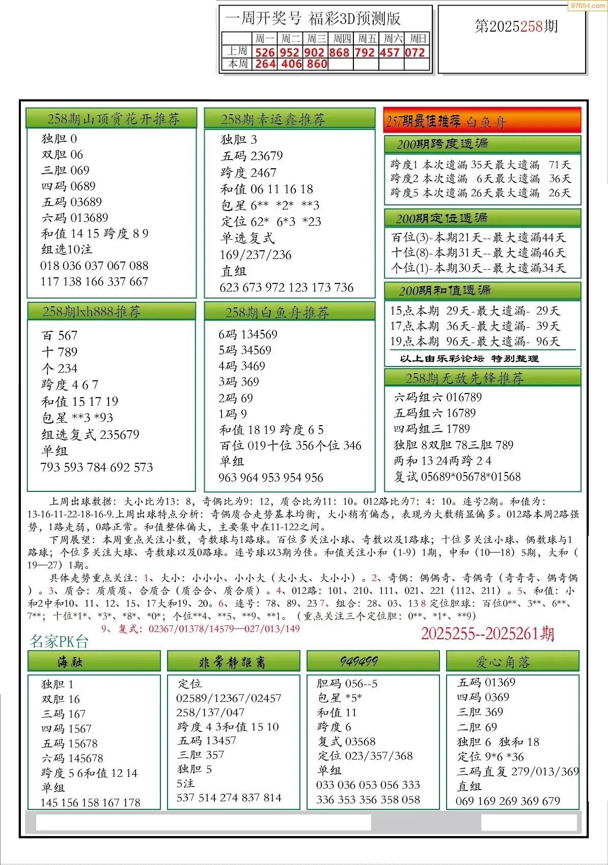 25年264期3D各板块资料整合汇总