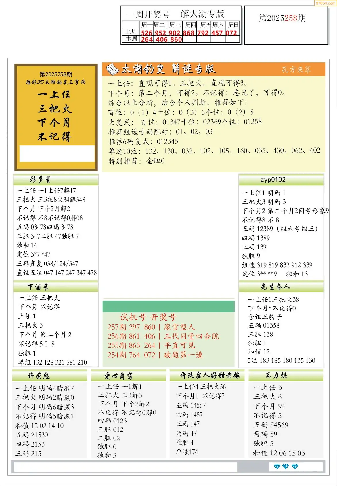 福彩3D264期天牛彩吧套图整合总汇