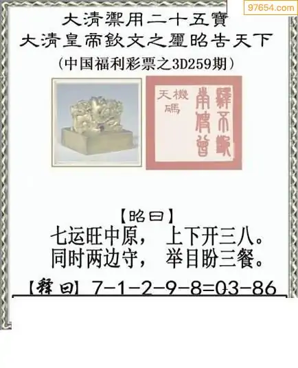 25265期福彩3D正版天宇和值谜