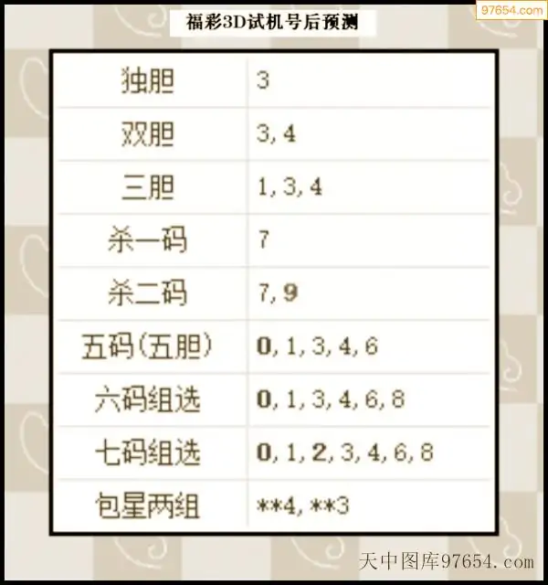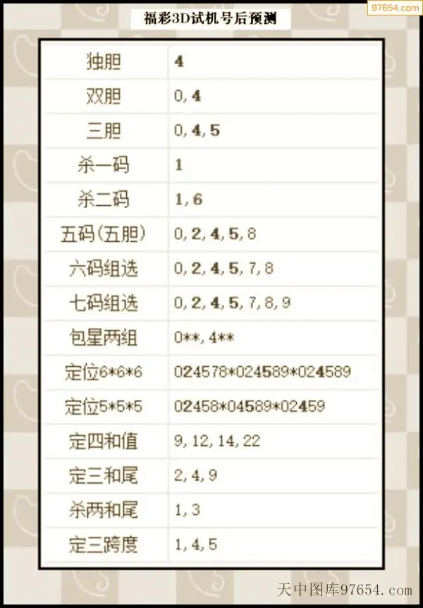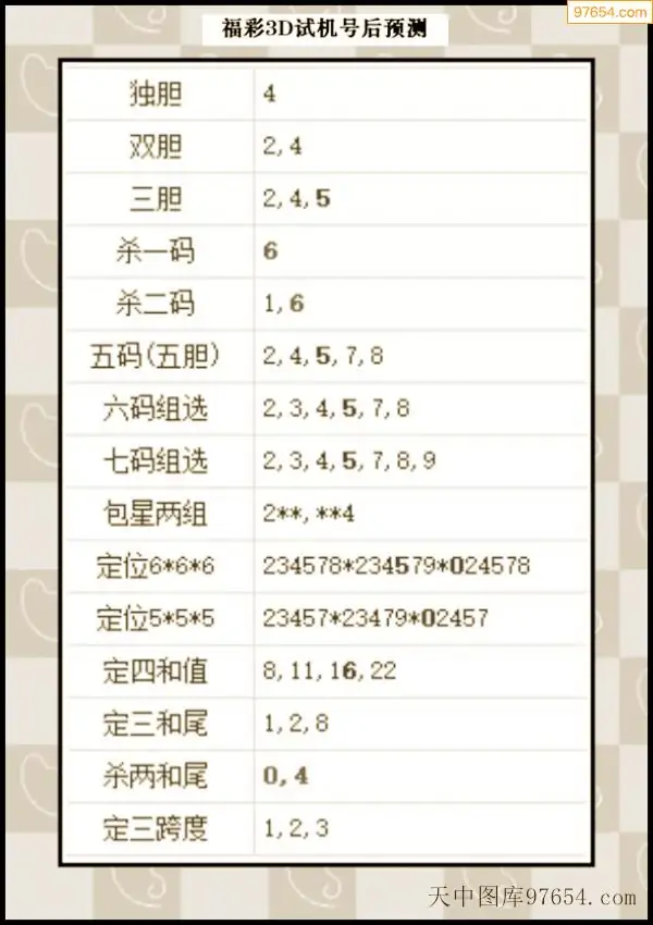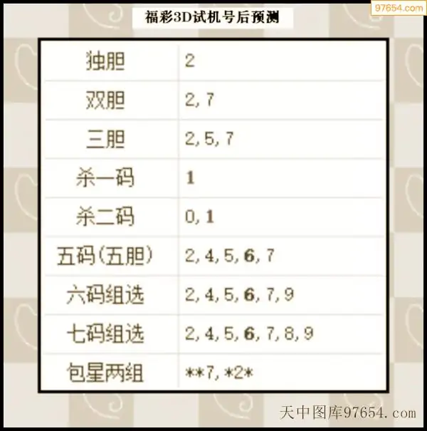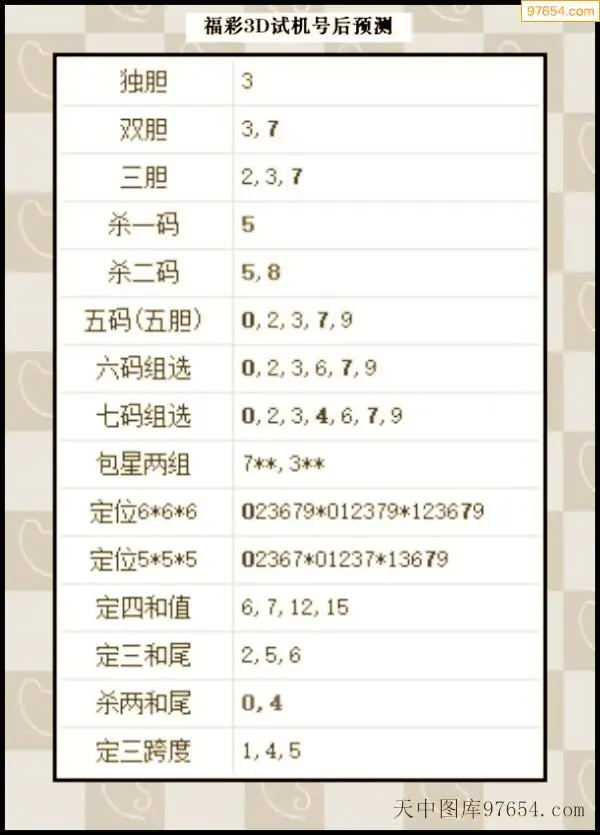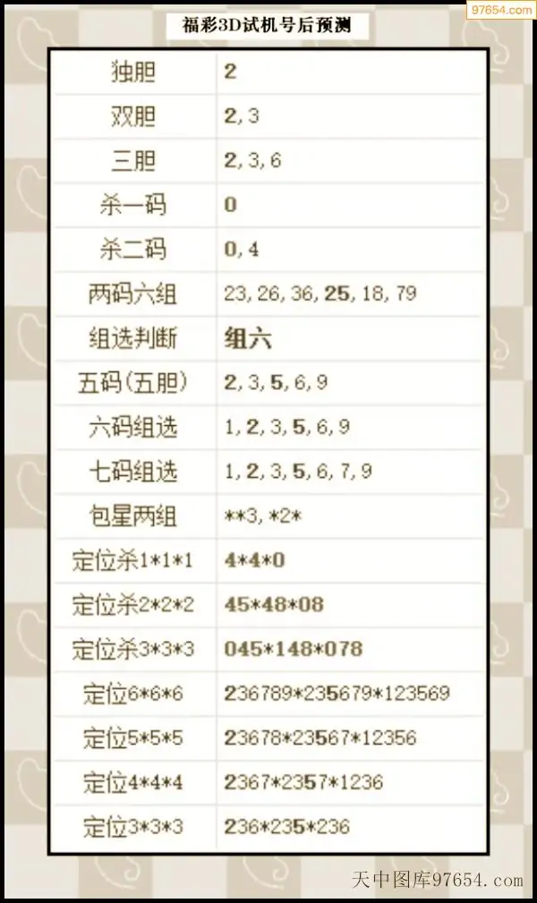 25年295期3d试机号后一语定胆分析汇总