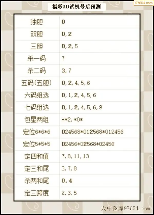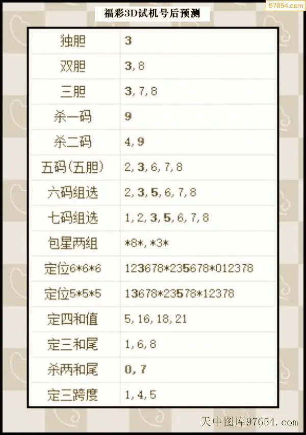25年295期天中图库专家3D试机号后分析汇总