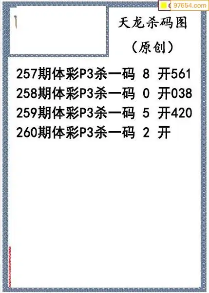 25年260期天龙体彩P3杀码图谜
