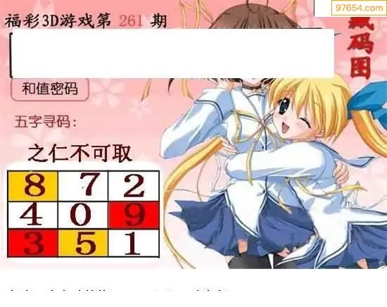25265期福彩3D正版天宇和值谜