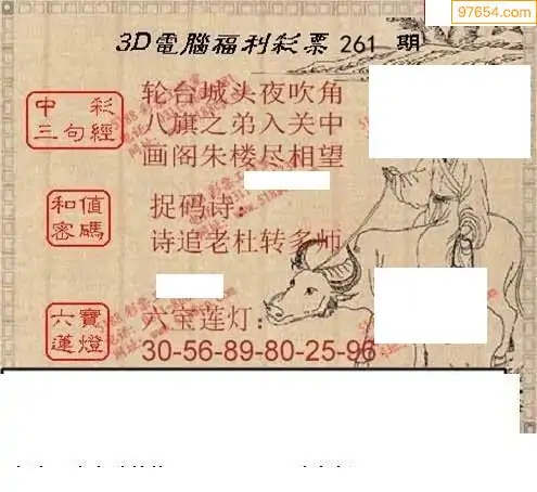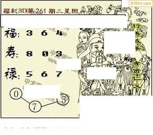 25265期福彩3D正版天宇和值谜