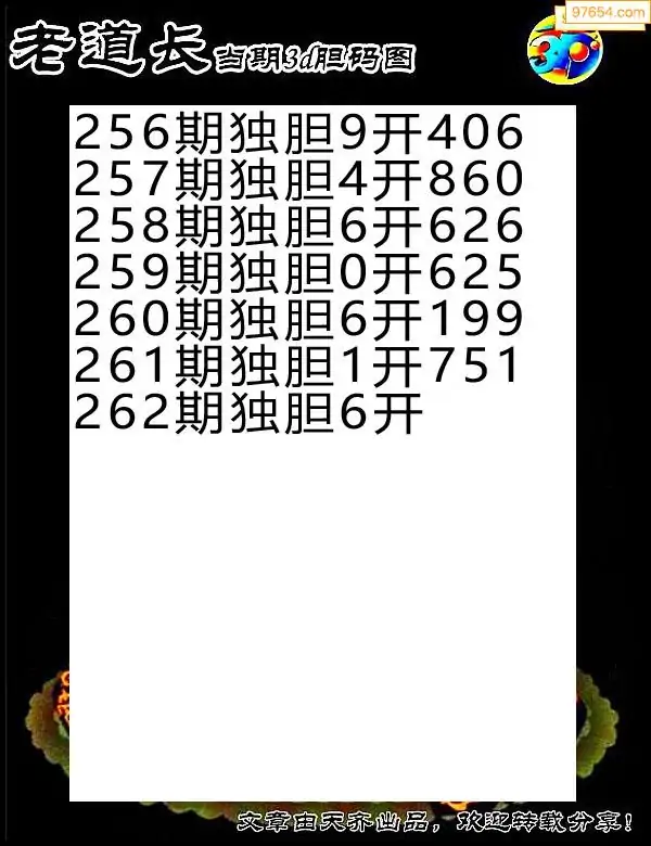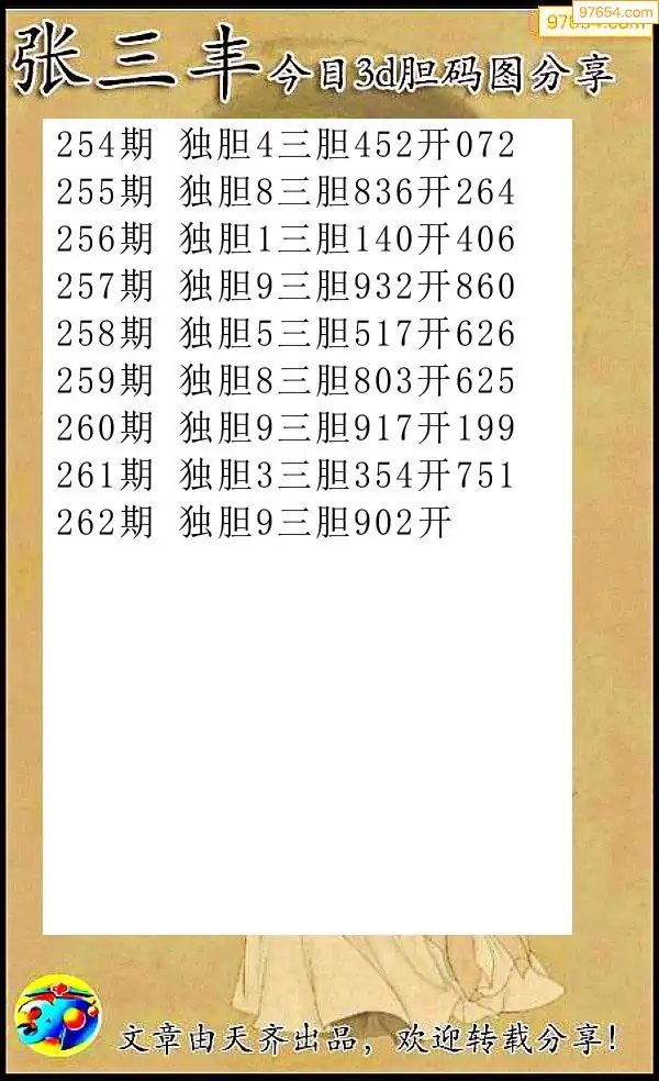 2025265期彩彩网3d原创图迷搜集(天中整理)