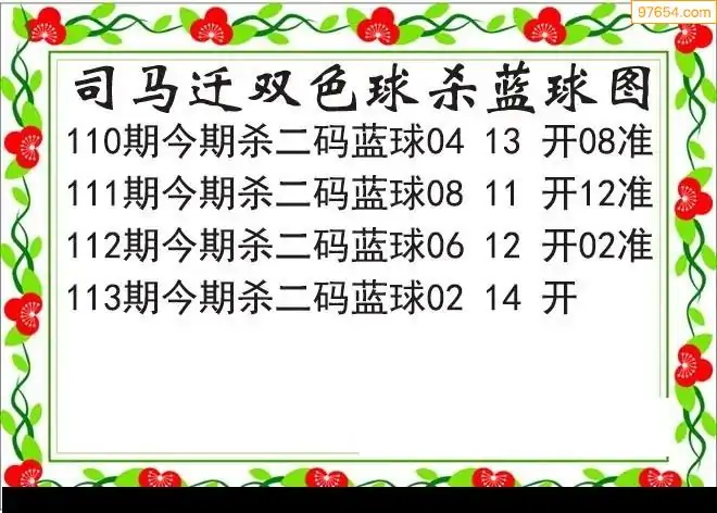25年双色球113期司马迁杀二蓝破解图谜