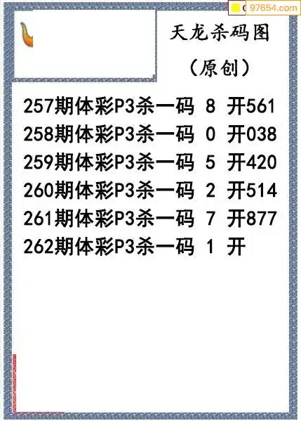 25年262期天龙体彩P3杀码图谜