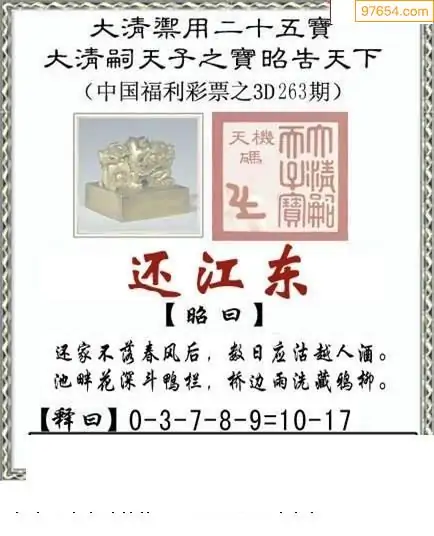 25265期福彩3D正版天宇和值谜