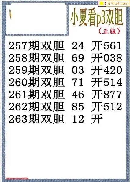 25263期小夏双胆体彩P3图谜