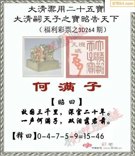 25264期福彩3D正版天宇和值谜
