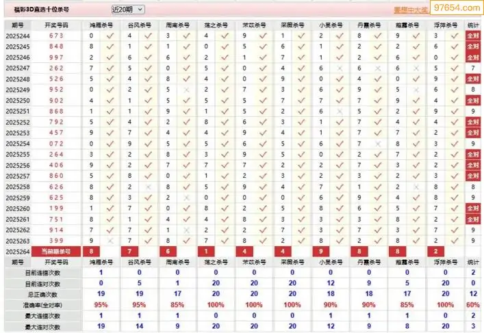 福彩3D25年264期非诚勿扰杀两号 5连中