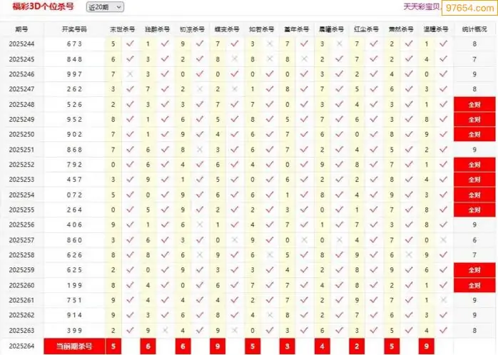 福彩3D25年264期非诚勿扰杀两号 5连中