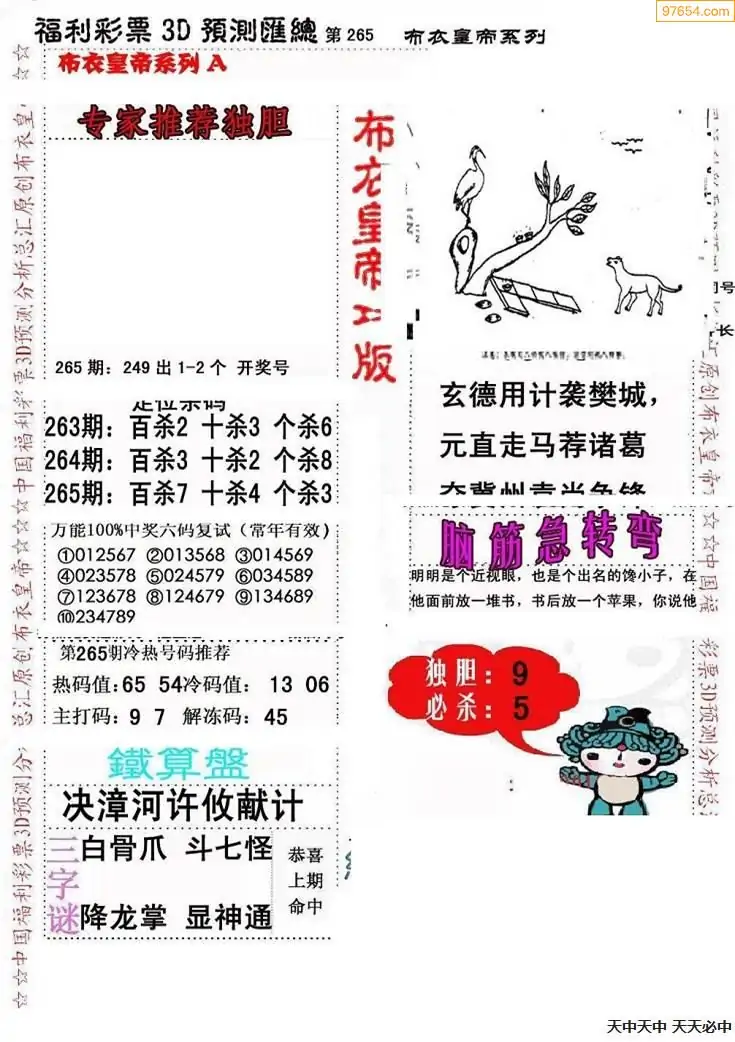 福彩265期3d真精华布衣+布衣早报(转载)