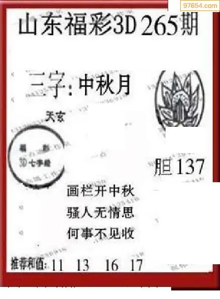 (8)25年265期今日3d各类彩报汇总