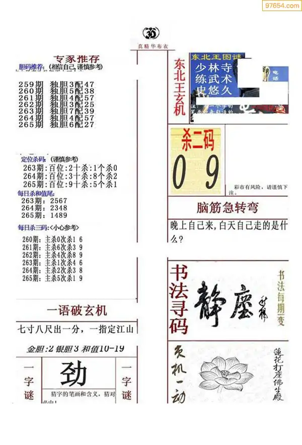 (5)25年265期福彩字谜图谜总汇