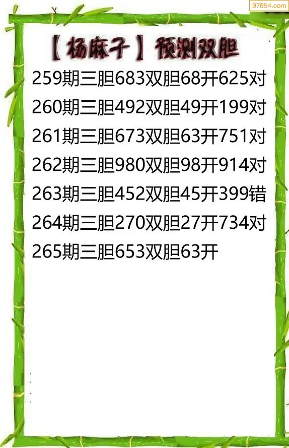 25年265期杨麻子双胆预测(原创)