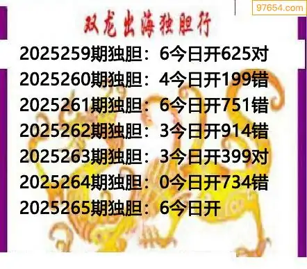 265期97654本站收集胆码出号预测