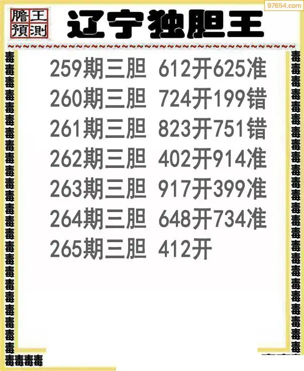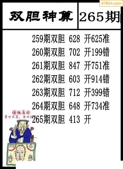 265期97654本站收集胆码出号预测