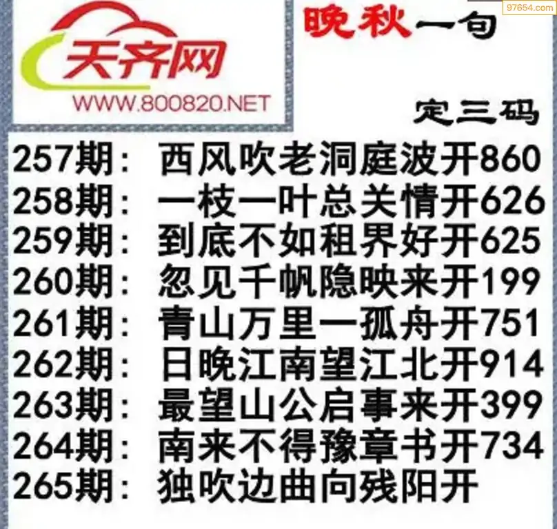 276期3D晚秋(和值)谜:妻尾钱衣 D:和尾上衣