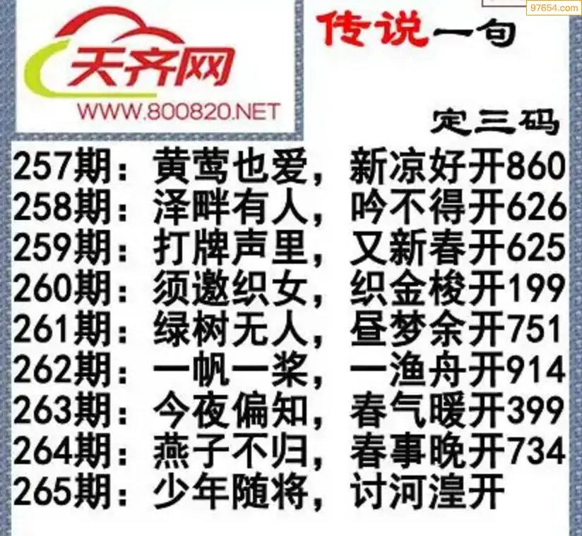 25275期福彩3d牛彩字谜汇总(天中网独家整理)