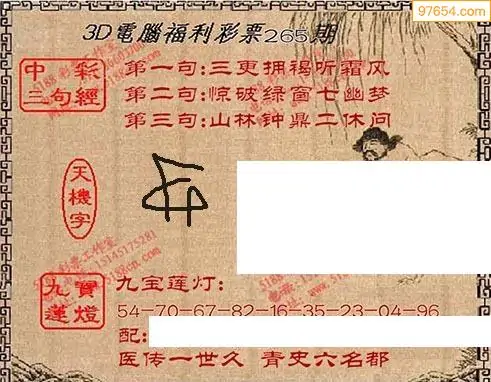 25265期福彩3D正版天宇和值谜