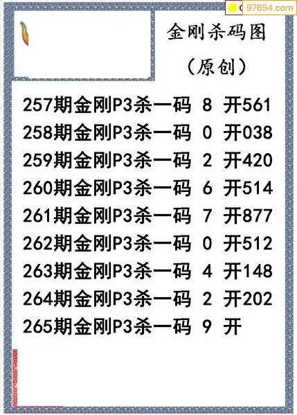 25年265期金刚排三杀码图谜